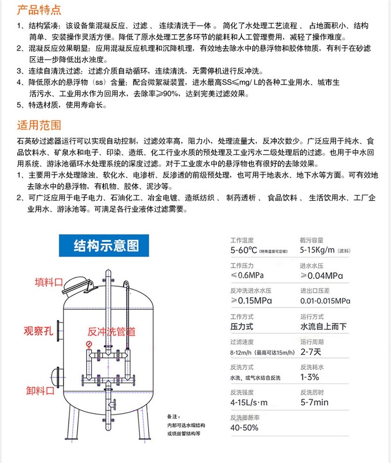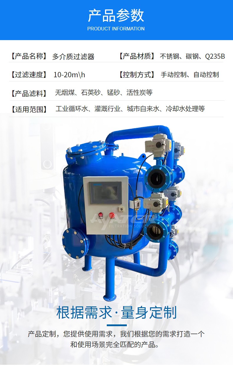 關鍵詞:多介質過濾器、石英砂過濾器、石英砂過濾罐、污水處理設備